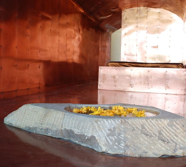 Il rame è il materiale che riveste le pareti della camera d'arte "Portatori d'acqua".